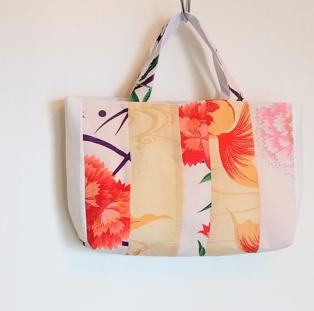暑いから出かけずに帆布トートを着物に合わせて縫いました。