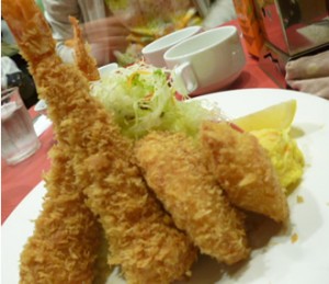 海老フライを食べると