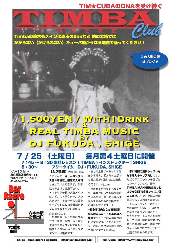 六本木アセレで今までにないTIMBAのDJイベントが始まります。
