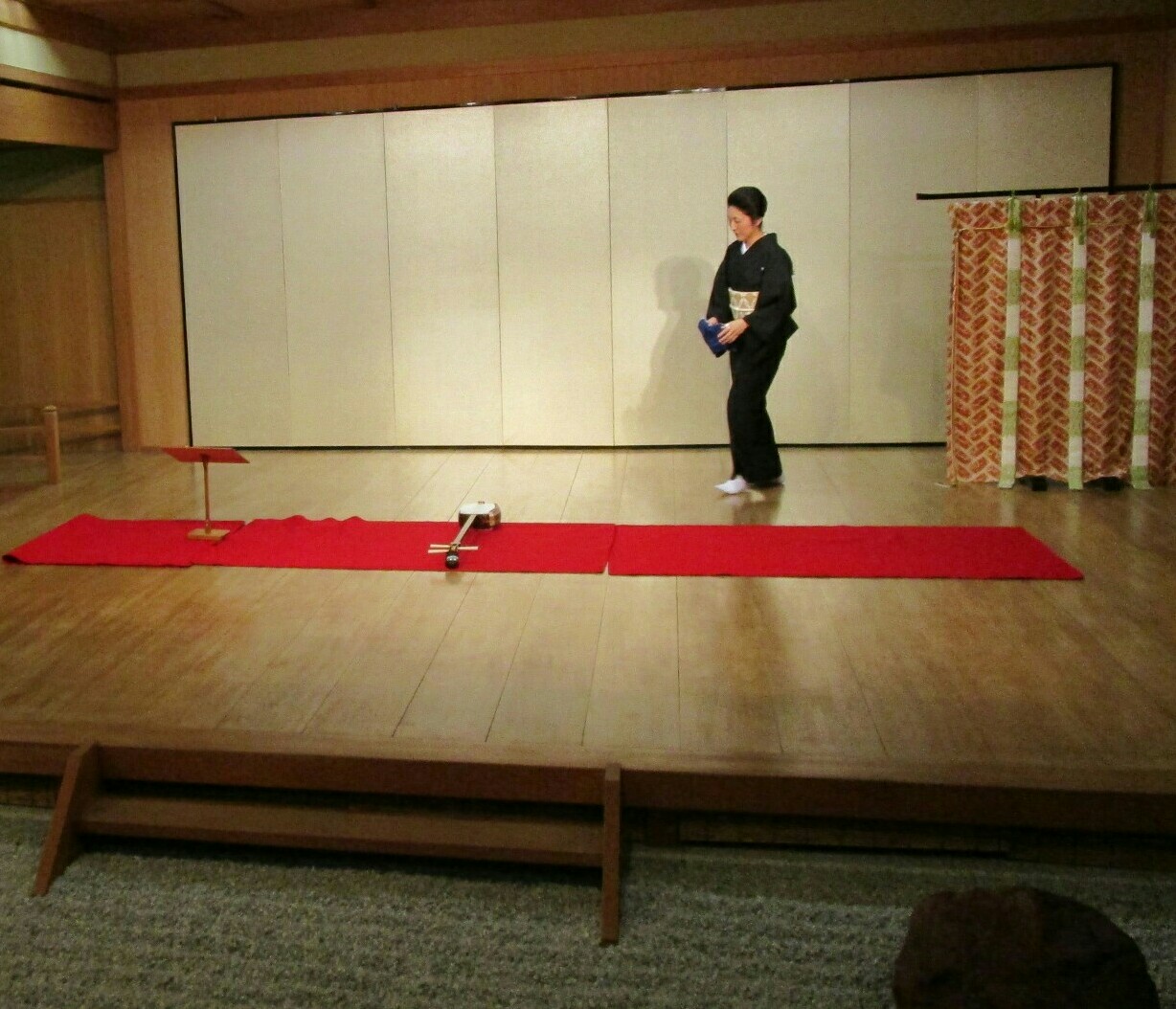 師匠が黒留袖に真っ赤な紅で