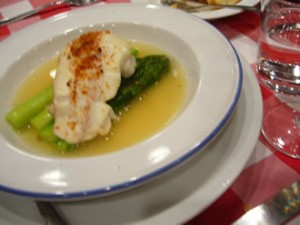白身魚を大ぶりの海老とアスパラで合わせた