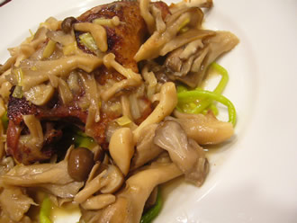 アスパラ・ソバージュとキノコ類の付け合わせも