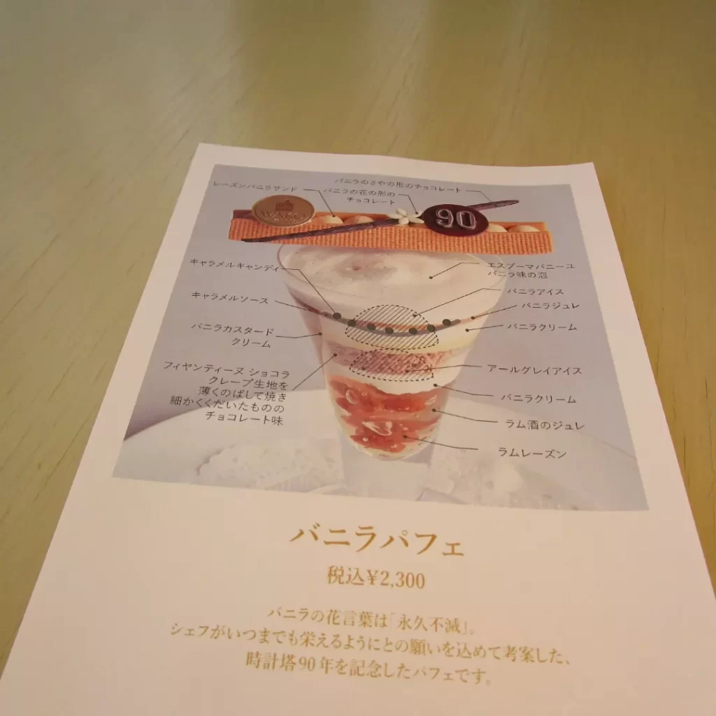 和光時計台90周年記念パフェ