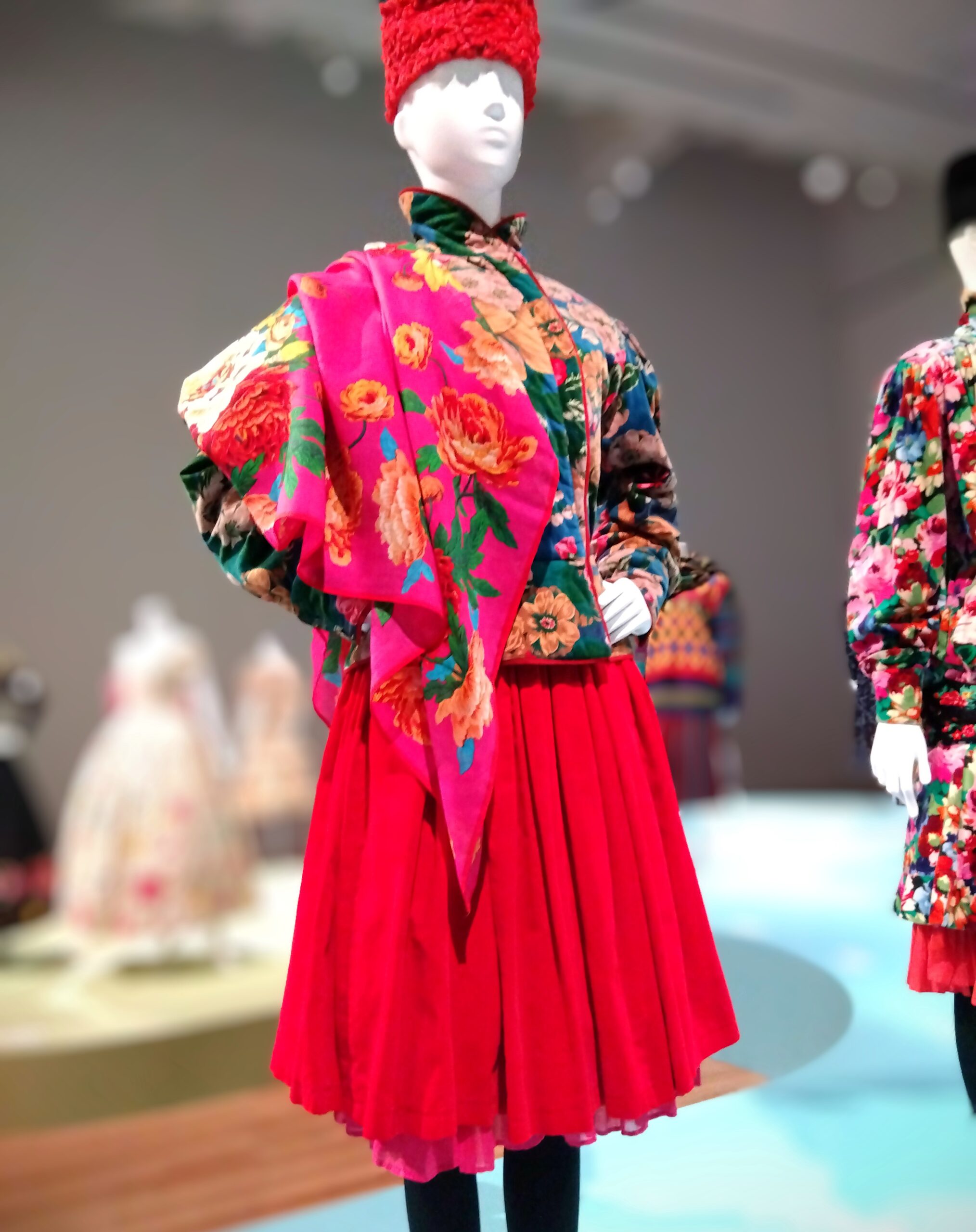 服の上にその鮮やかなストールで