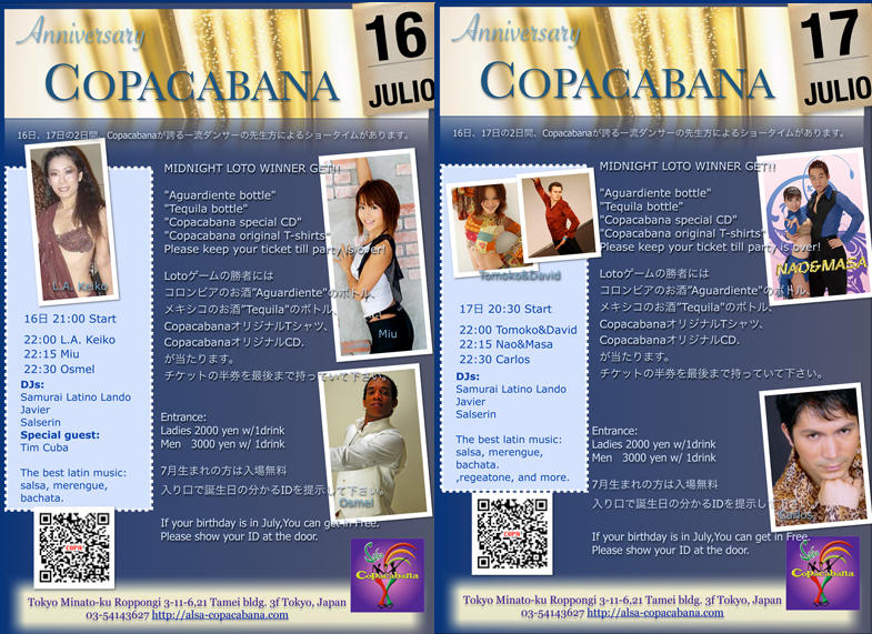 六本木コパカバーナのアニバーサリー・イヴェントに