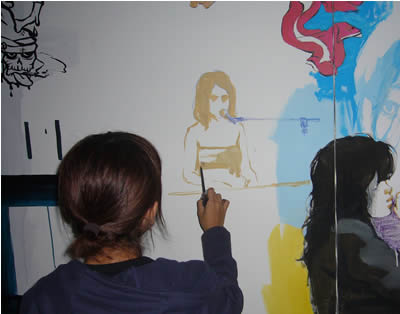 クラブの壁に歌うアイデーを描いていらっしゃる方が。