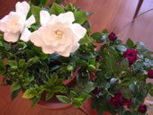 くちなしとミニバラの鉢植えを購入。